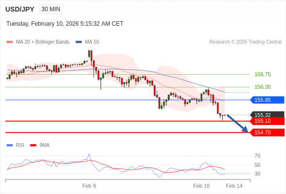 在 155.85 之下,看跌,目标价位为 155.10 ,然后为 154.70 。