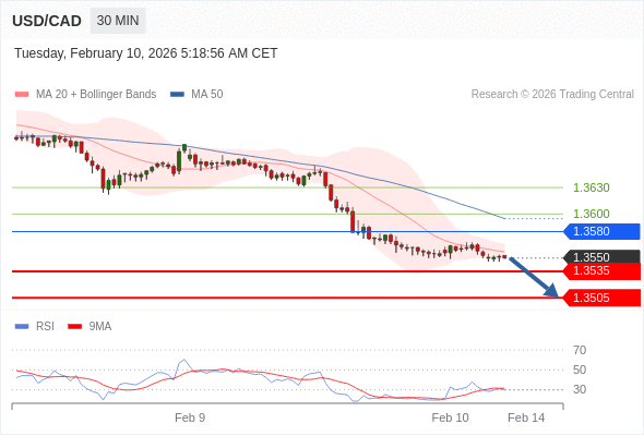 在 1.3580 之下,看跌,目标价位为 1.3535 ,然后为 1.3505 。