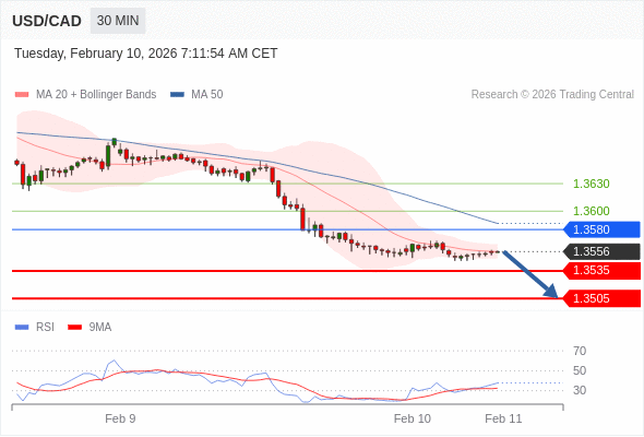 在 1.3580 之下,看跌,目标价位为 1.3535 ,然后为 1.3505 。