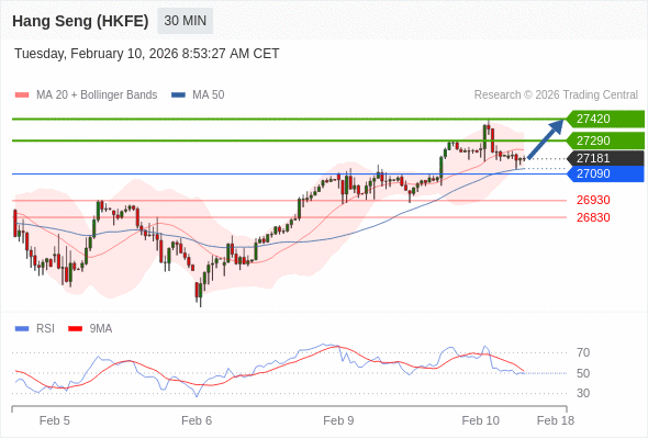 在 27090 之上,看涨,目标价位为 27290 ,然后为 27420 。