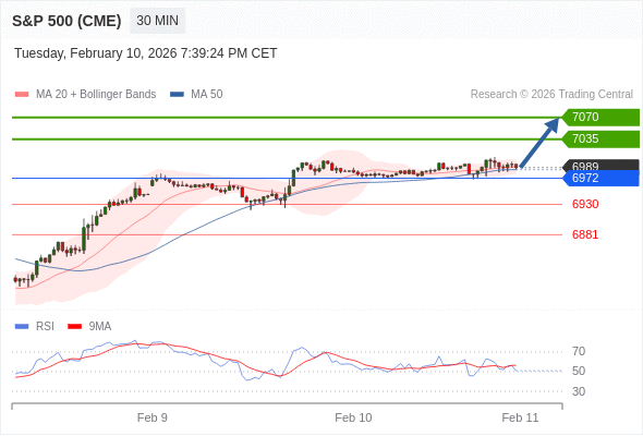 在 6972 之上,看涨,目标价位为 7035 ,然后为 7070 。