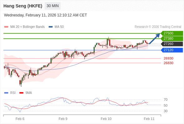 在 27120 之上,看涨,目标价位为 27380 ,然后为 27500 。