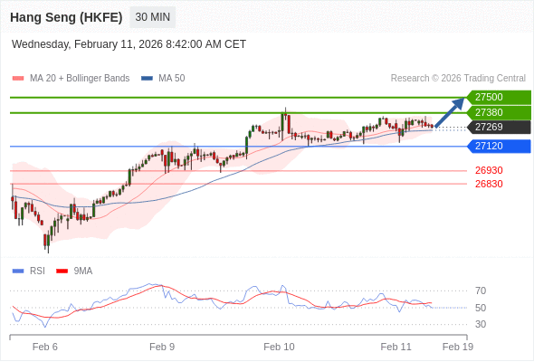 在 27120 之上,看涨,目标价位为 27380 ,然后为 27500 。