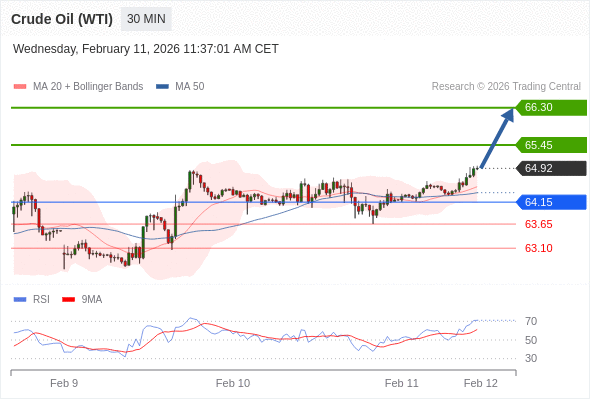 在 64.15 之上,看涨,目标价位为 65.45 ,然后为 66.30 。