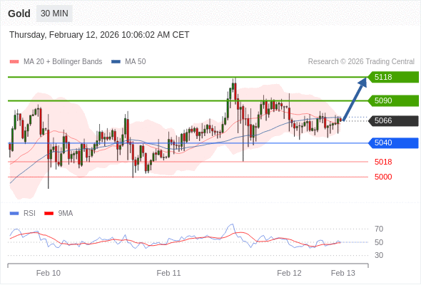 在 5040 之上,看涨,目标价位为 5090 ,然后为 5118 。