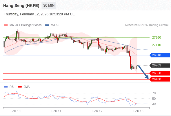 在 26910 之下,看跌,目标价位为 26550 ,然后为 26430 。
