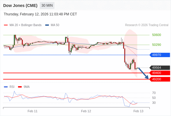 在 49970 之下,看跌,目标价位为 49400 ,然后为 49200 。