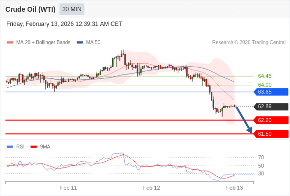 在 63.65 之下,看跌,目标价位为 62.20 ,然后为 61.50 。