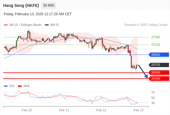 在 26910 之下,看跌,目标价位为 26550 ,然后为 26430 。