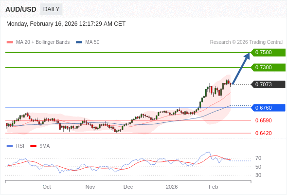在 0.6760 之上,看涨,目标价位为 0.7300 ,然后为 0.7500 。