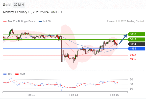 在 4985 之上,看涨,目标价位为 5045 ,然后为 5080 。