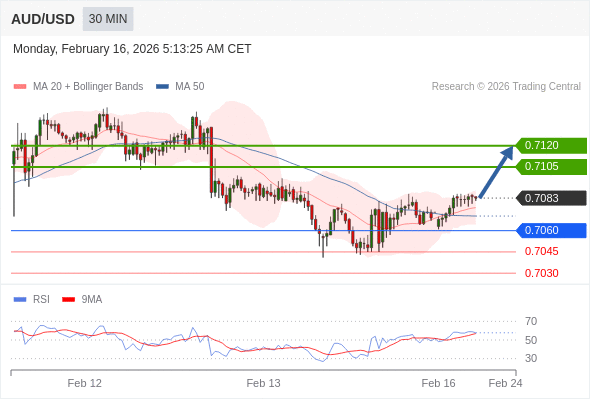 在 0.7060 之上,看涨,目标价位为 0.7105 ,然后为 0.7120 。