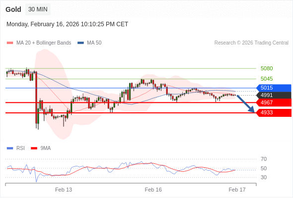 在 5015 之下,看跌,目标价位为 4967 ,然后为 4933 。