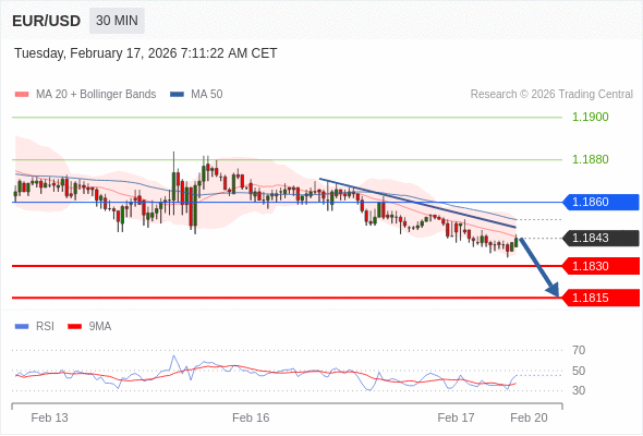 在 1.1860 之下,看跌,目标价位为 1.1830 ,然后为 1.1815 。