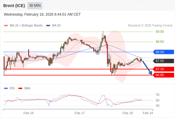 交易策略: 在 68.00 之下,看跌,目标价位为 67.15 ,然后为 66.85 。