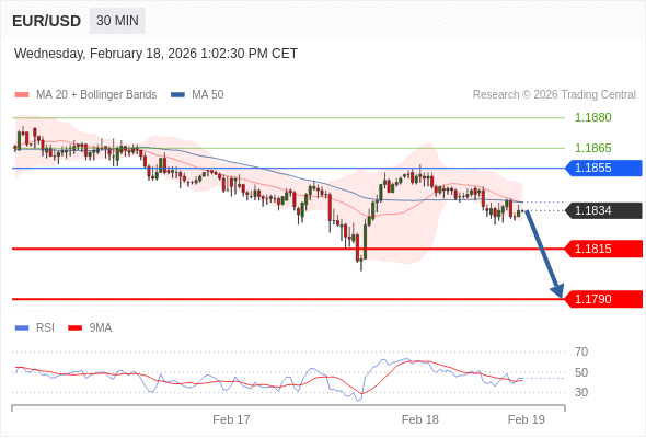 在 1.1855 之下,看跌,目标价位为 1.1815 ,然后为 1.1790 。