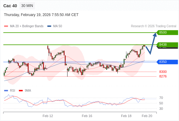 在 8350 之上,看涨,目标价位为 8438 ,然后为 8500 。