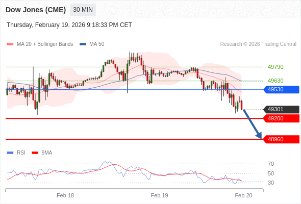 在 49530 之下,看跌,目标价位为 49200 ,然后为 48960 。