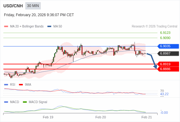 美元/人民币 当日内 : 看跌,在 6.9035 之下。