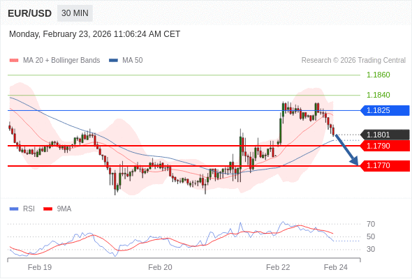 在 1.1825 之下,看跌,目标价位为 1.1790 ,然后为 1.1770 。