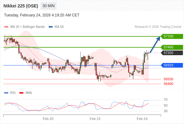 日经225股指期货 (OSE) 当日内: 目标位为57700。