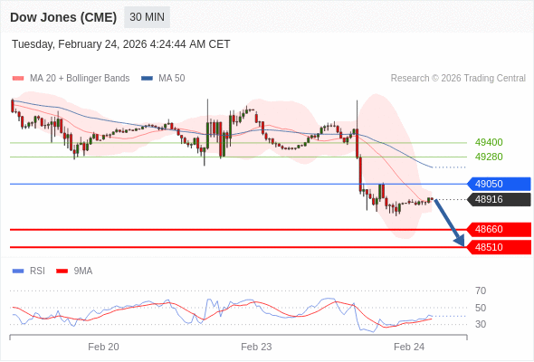 在 49050 之下,看跌,目标价位为 48660 ,然后为 48510 。