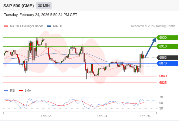 在 6870 之上,看涨,目标价位为 6910 ,然后为 6930 。