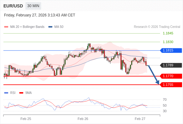交易策略: 在 1.1815 之下,看跌,目标价位为 1.1770 ,然后为 1.1755 。