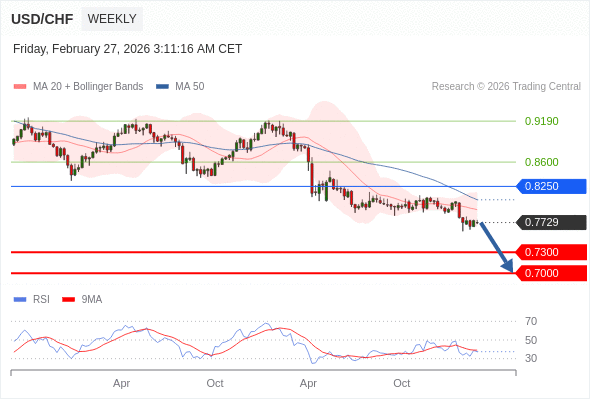 交易策略: 在 0.8250 之下,看跌,目标价位为 0.7300 ,然后为 0.7000 。