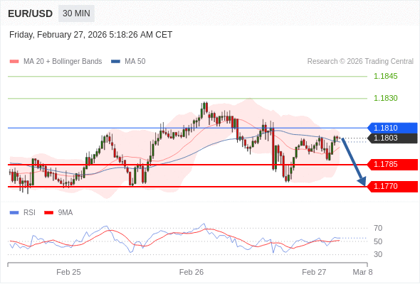 在 1.1810 之下,看跌,目标价位为 1.1785 ,然后为 1.1770 。