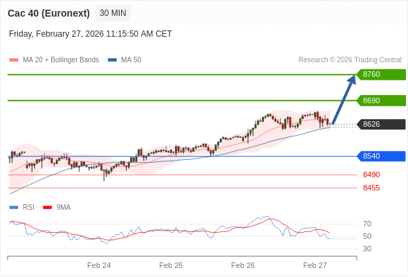 在 8540 之上,看涨,目标价位为 8690 ,然后为 8760 。
