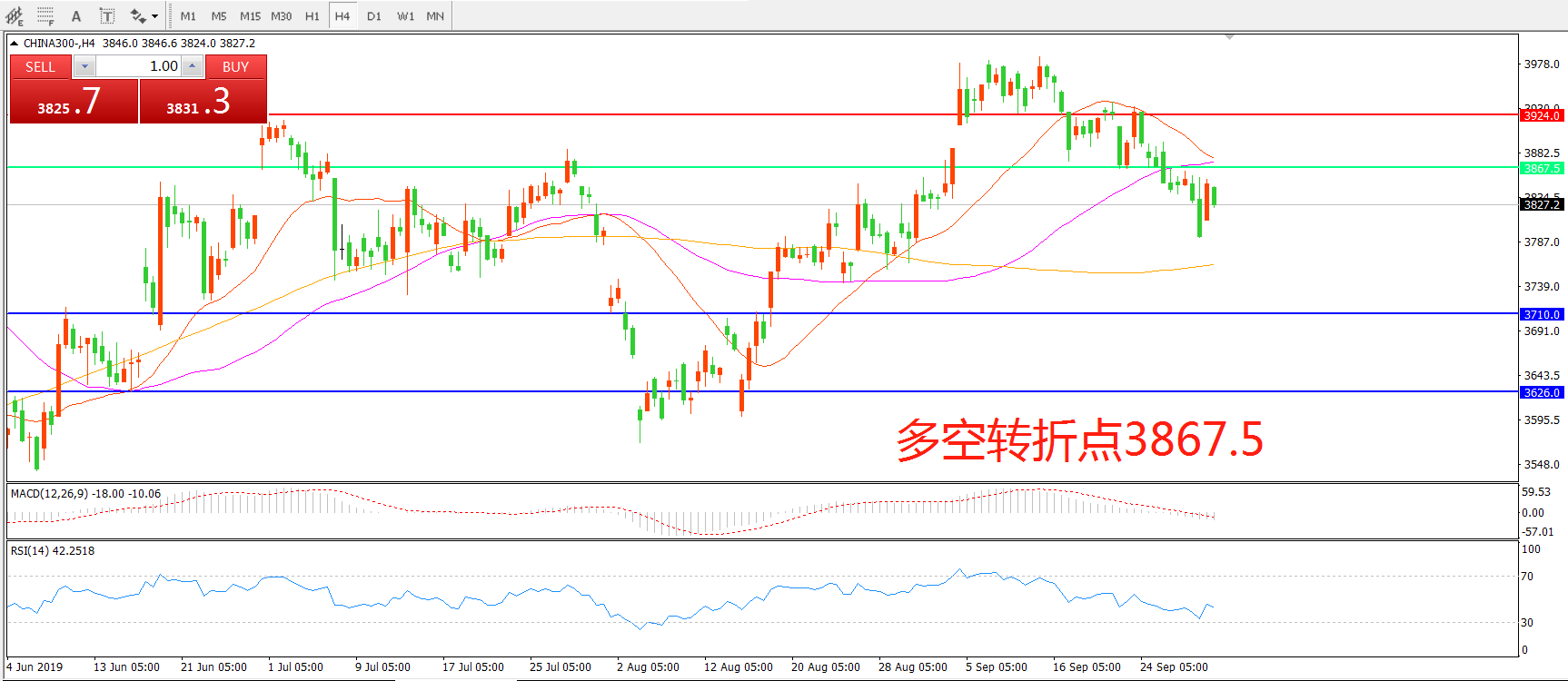 多空转折点:3867.50