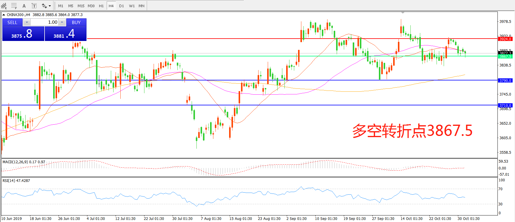 多空转折点:3867.50