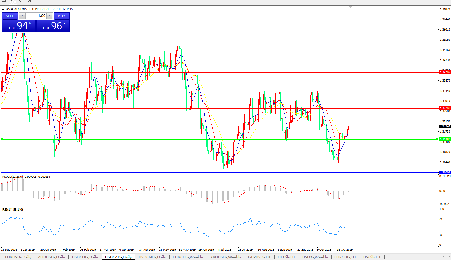 美元兑加元USDCAD    日线图: