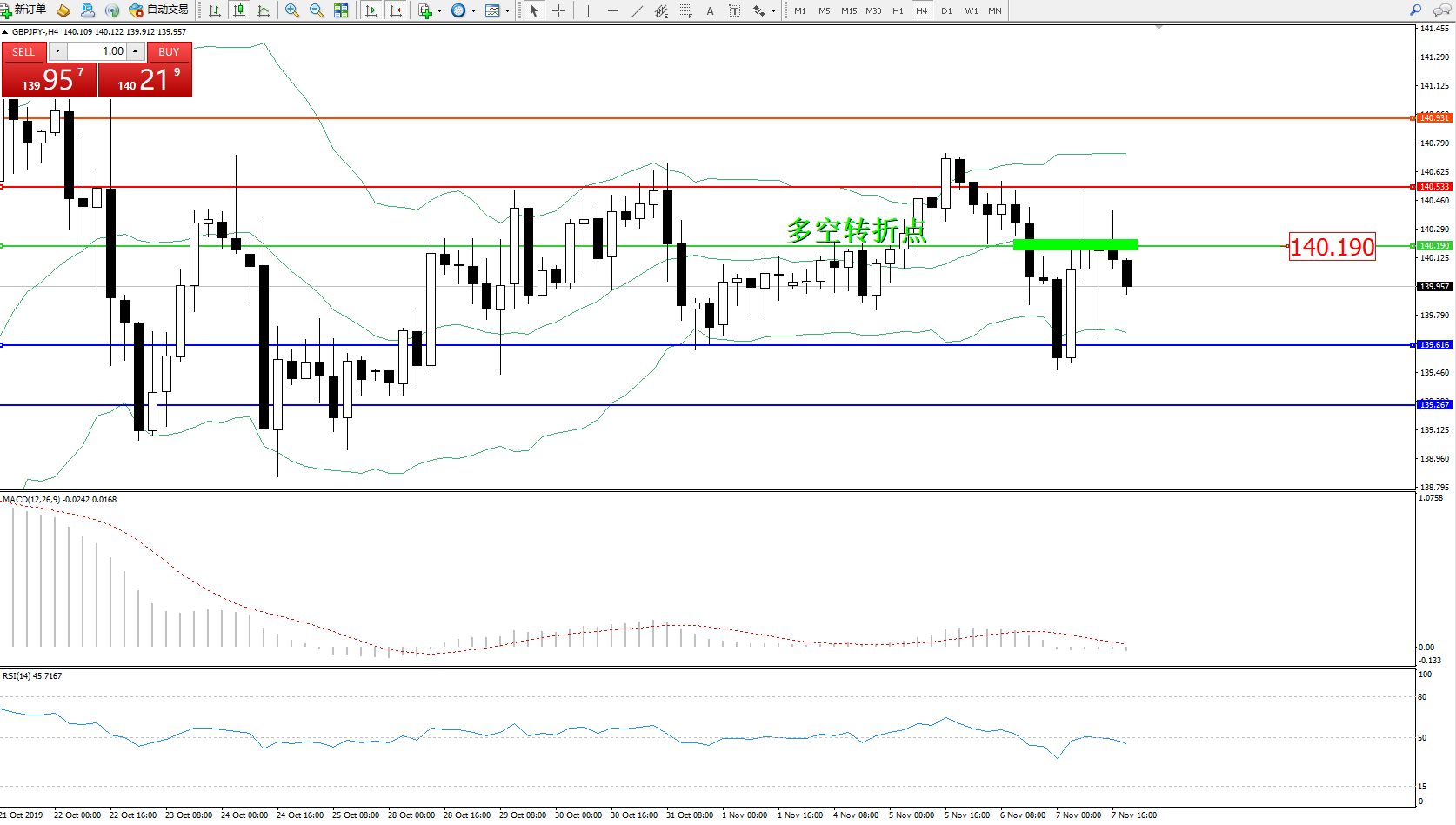 交易策略:140.190下方看跌,目标139.616139.267