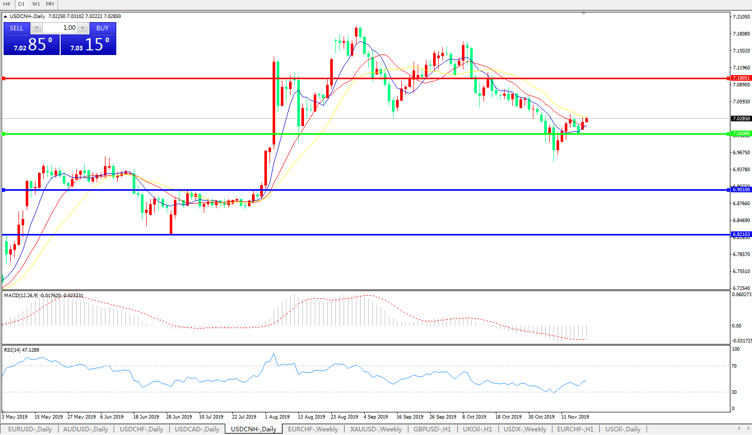 交易策略: 在7.0000之上,看涨,目标价位为7.1000,然后为7.2000。