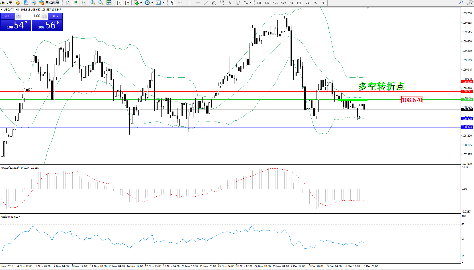 交易策略:108.670下方看跌,目标108.428108.324