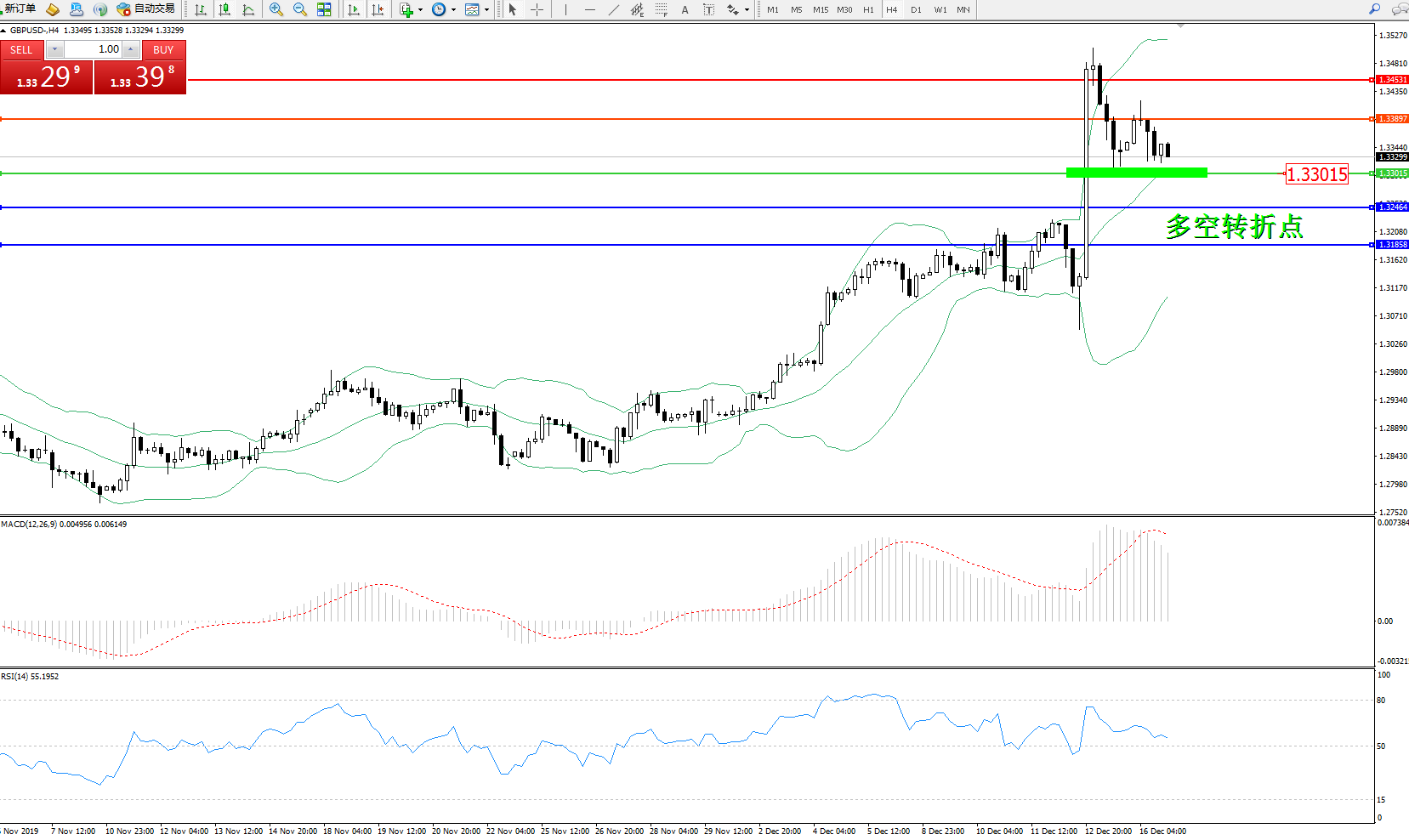 交易策略:1.33015上方看涨,目标1.33897、1.34531