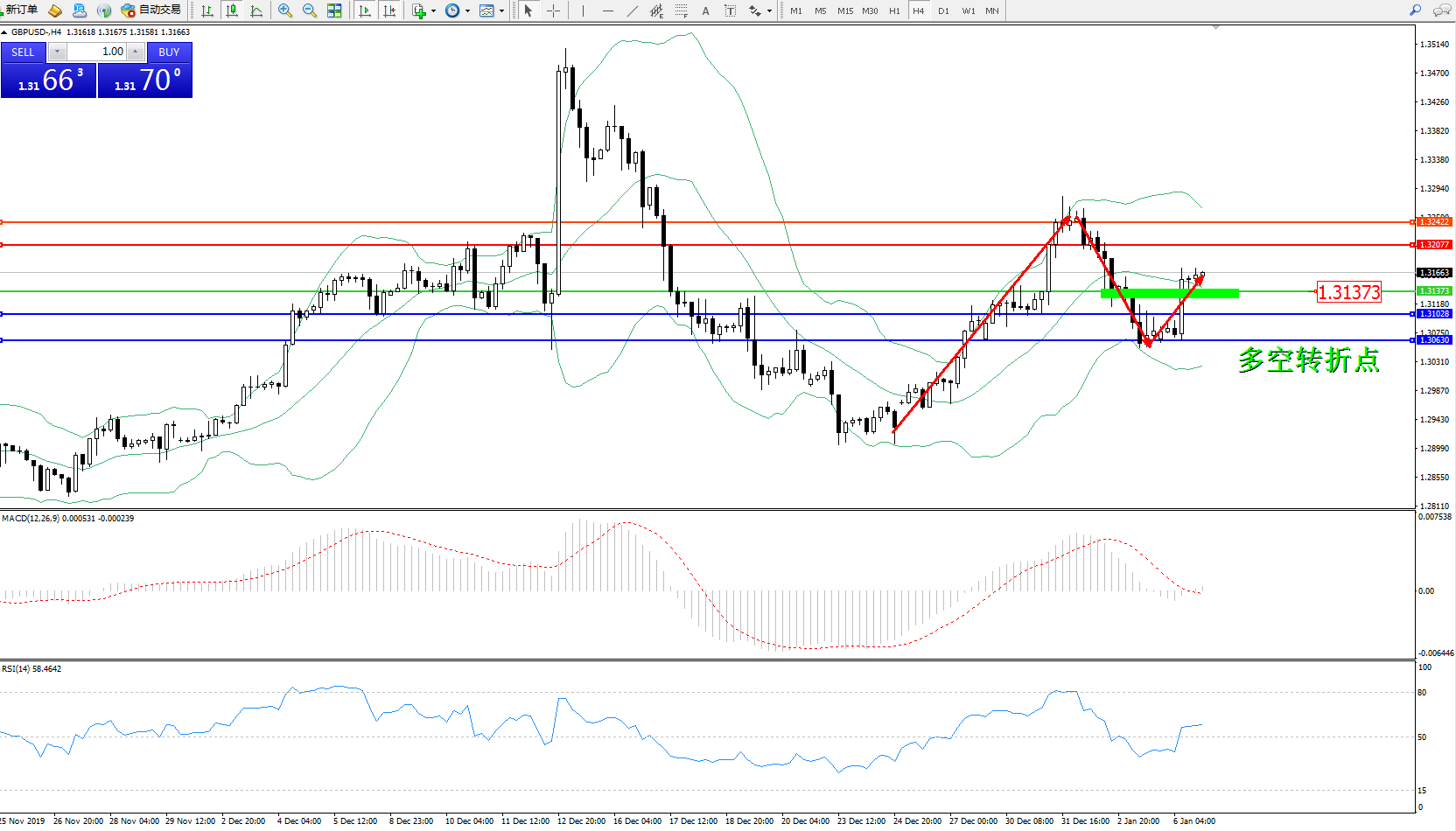 交易策略:1.31373上方看涨,目标1.32077、1.32422