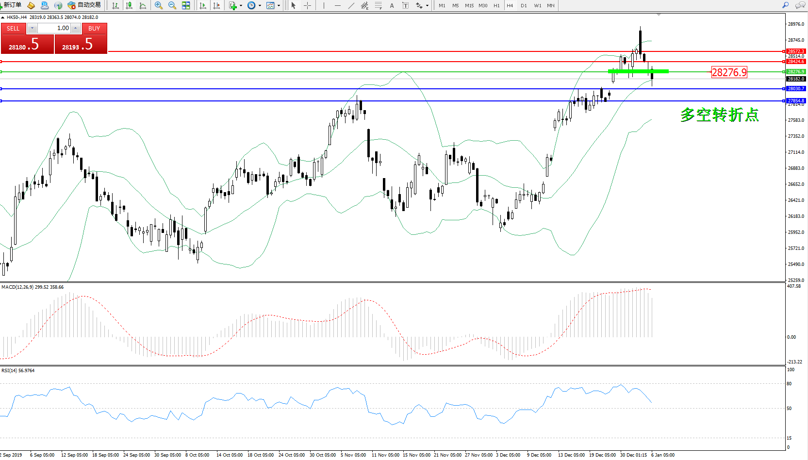 恒指HK50 ——4小时K线图显示: