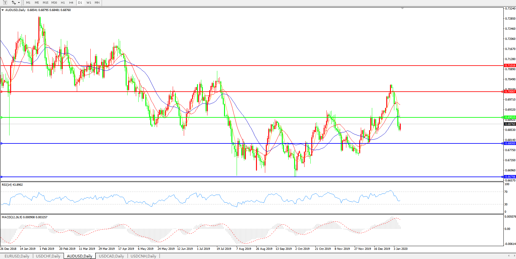 备选策略:0.6900上方看涨,目标0.7000、0.7100