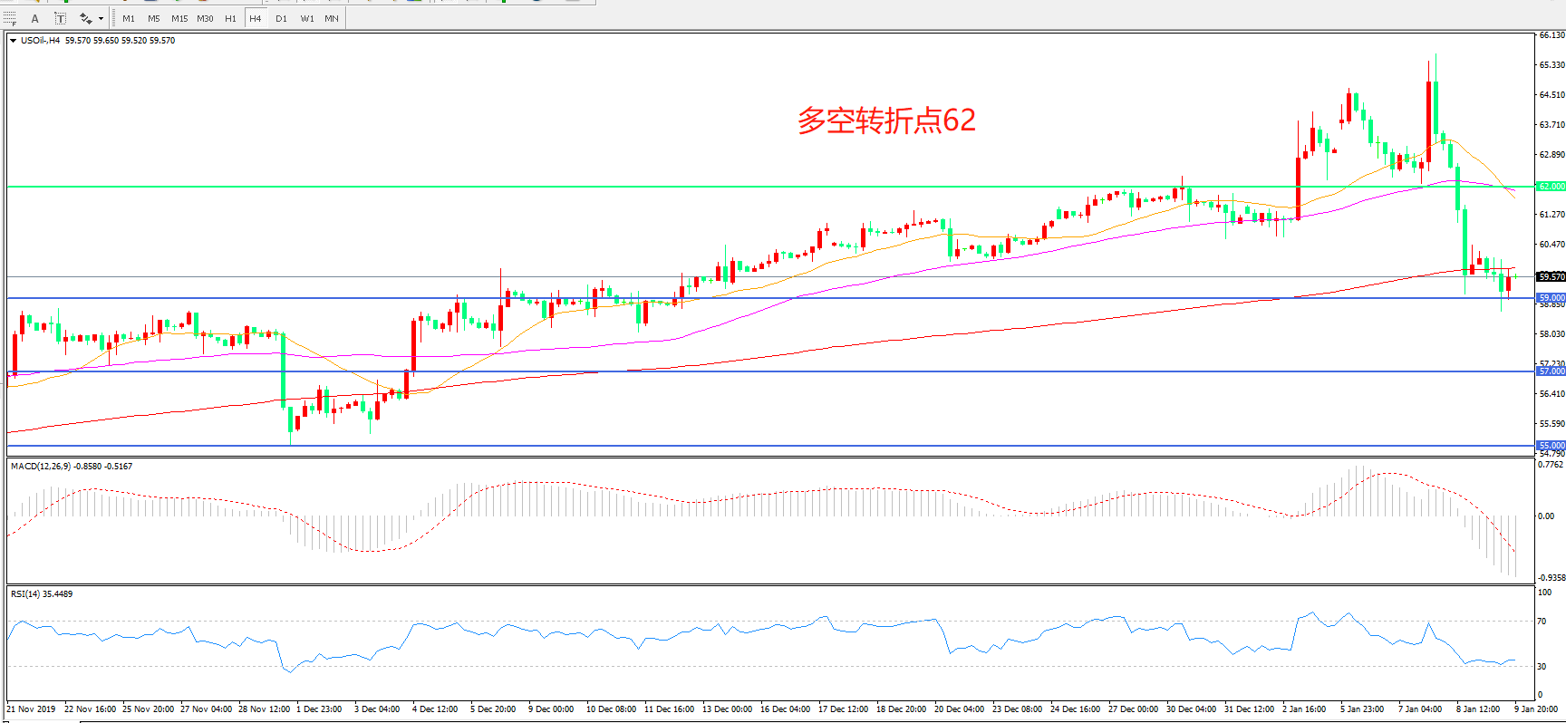 交易策略: 在62.00之下看跌,目标59.00 57.00