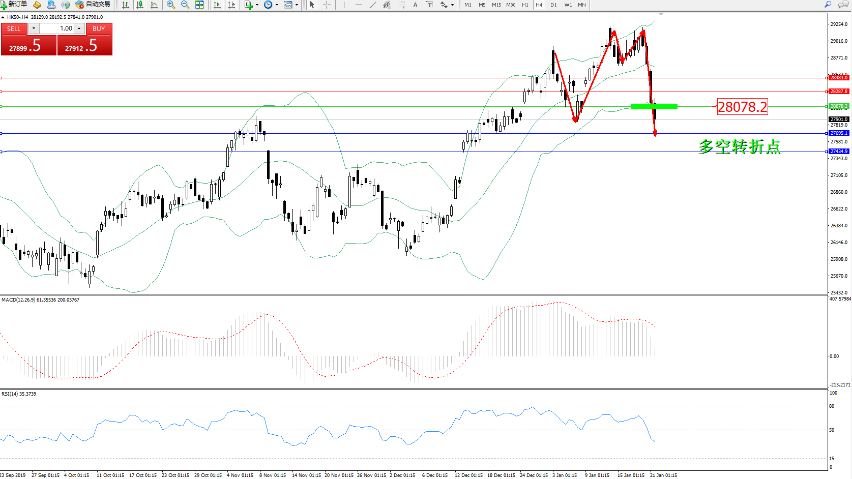 技术点评:多头动力不断创新高后遇阻呈断崖式下挫,跌破布林带指标下轨后有继续下行态势,且布林带指标呈张口走势中,跌势未有止步迹象,MACD指标多头区域高位横盘整理后急速下移至0轴线上方弱势徘徊,RSI指标空头动力下破50均衡线后进入空头区域持续下行中;