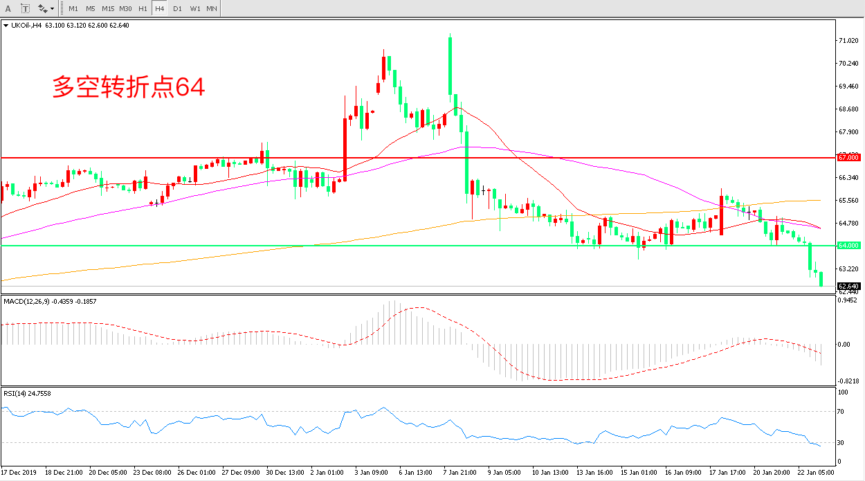 交易策略:在64.00之下看跌,目标62.00 60.00