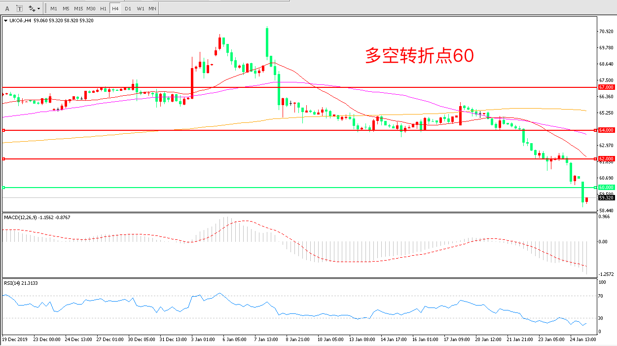 交易策略:在60.00之下看跌,目标57.00 55.00