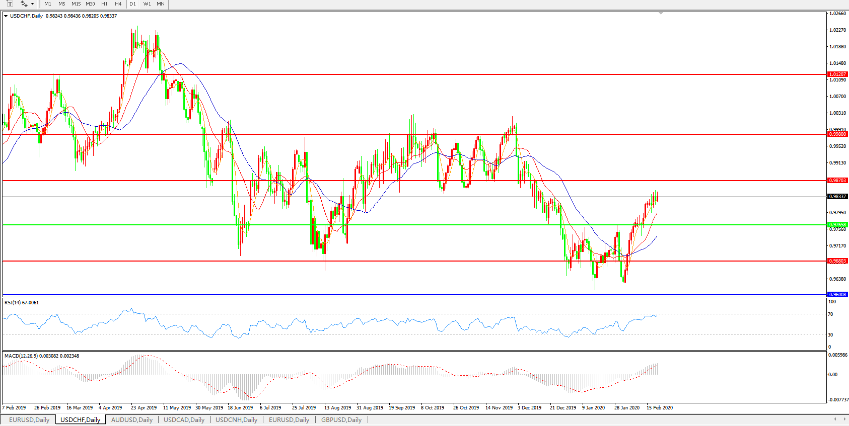 美元兑瑞郎USDCHF 日线图: