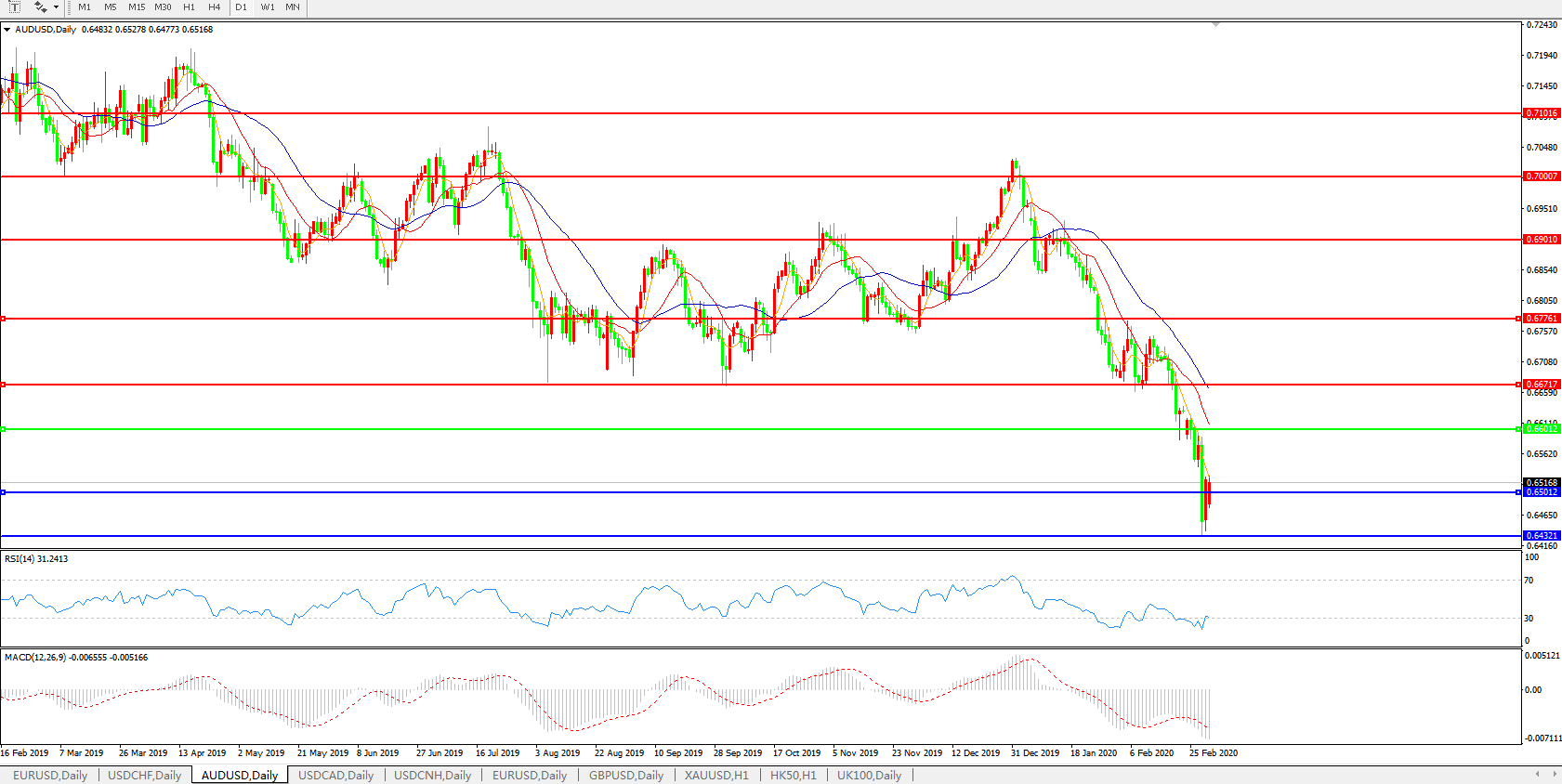 澳元兑美元AUDUSD 日线图: