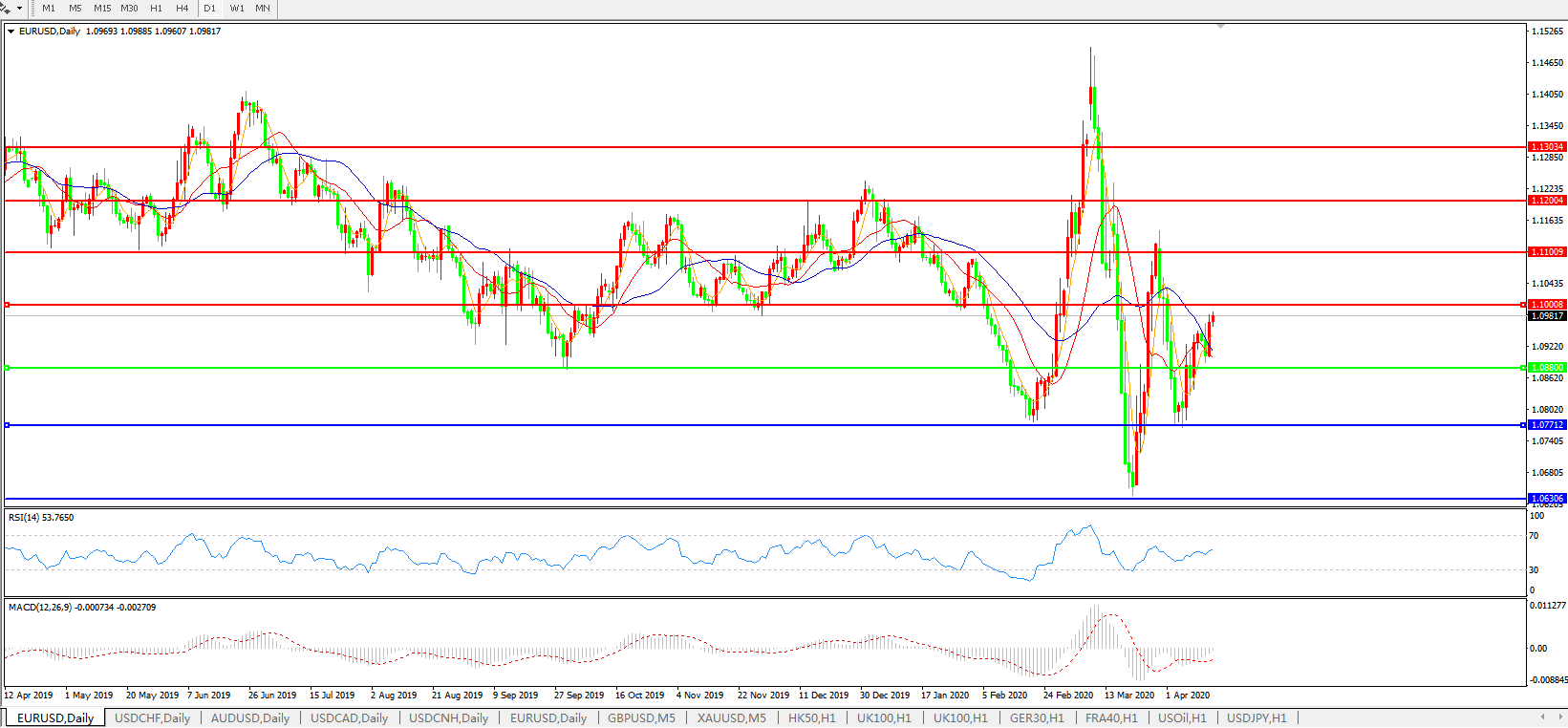 交易策略:1.0880上方看涨,目标1.1000、1.1100