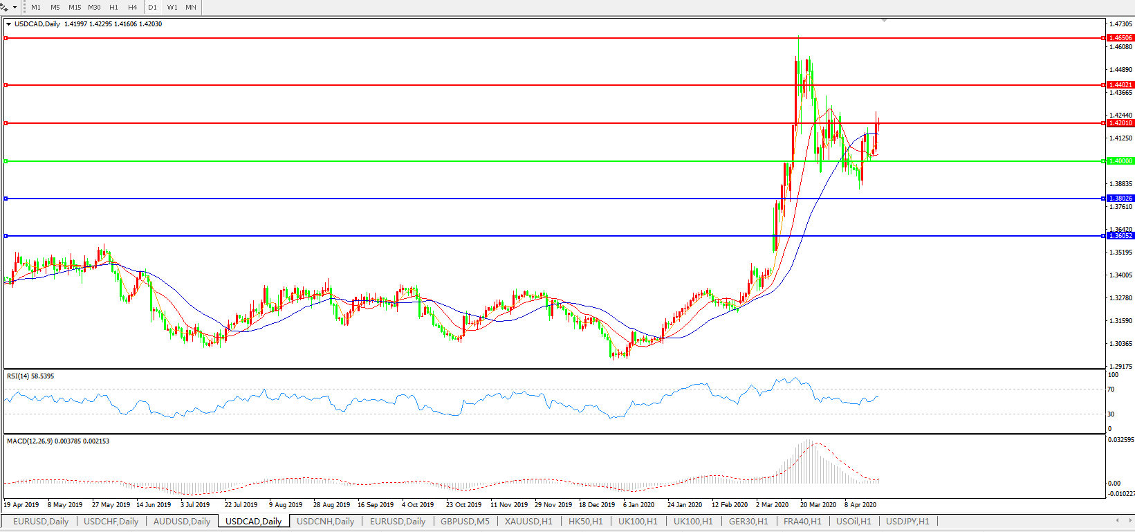 美元兑加元USDCAD 日线图: