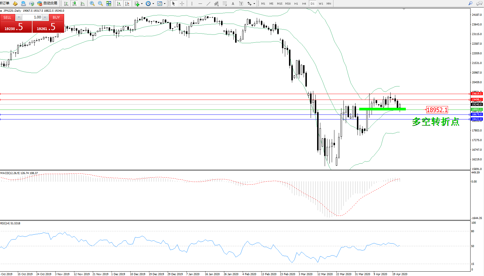 日经指数JPN225——日K线图显示:
